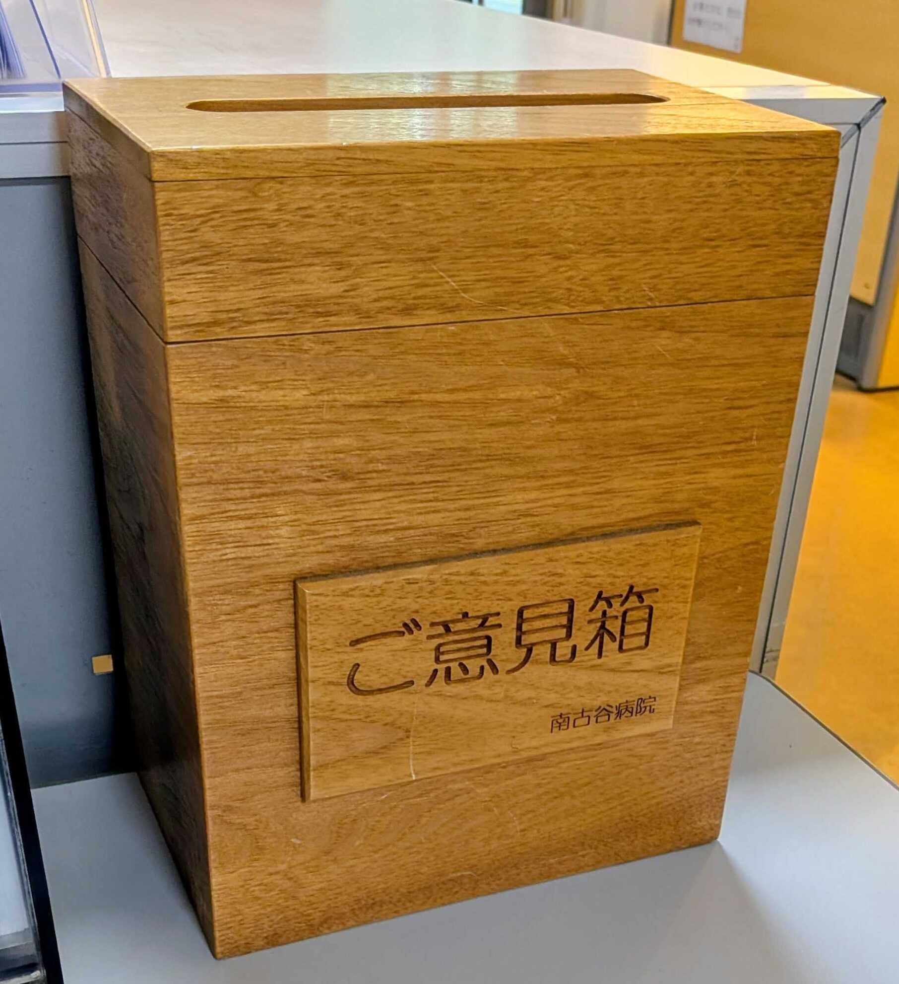 当院では、患者様・ご家族様へのサービス充実、満足度向上を目的として、院内各所に投書箱を設置しております。病院やスタッフに関する様々なご意見、ご感想等どんな些細な事柄でも構いませんので、皆さまからの貴重なお声をぜひお聴かせください。また、頂戴いたしましたご意見への回答は、外来待合ロビーに掲示しております。